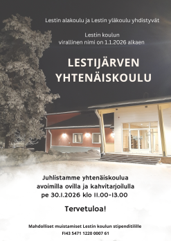 Lestin alakoulu ja Lestin yläkoulu yhdistyivät vuodenvaihteessa ja Lestin koulun virallinen nimi on 1.1.2026 alkaen Lestijärven yhtenäiskoulu.